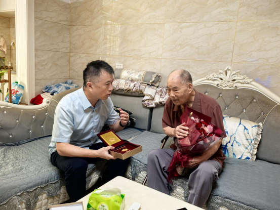8月26日,江西公司党委委员、副总经理胡勇胜到贵电分公司慰问98岁抗战老战士闫芬山。