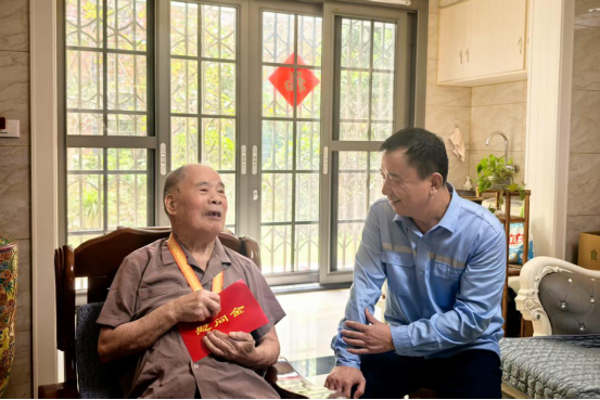 9月4日,江西公司党委书记、董事长吕峰到贵电分公司看望慰问离休干部、“中国人民抗日战争胜利80周年”纪念章获得者闫芬山老战士,代表公司党委向他致以崇高敬意和诚挚问候。